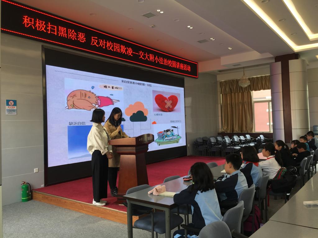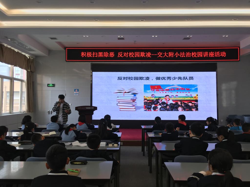 2019年4月15日,开云电子体育_开云(中国)开云电子体育_开云(中国)硕7155班(三年制)党支部一行10人来到开云电子体育_开云(中国)附属小学,以“积极扫黑除恶,反对校园欺凌”为主题开展了校园法治宣讲活动。本次宣讲分三组进行,由浅入深,以视频、情景表演、信件沟通等方式形象生动的向小学生们传达了面对校园欺凌,该如何保护自己,如何拿起法律的武器保护自己的权益。