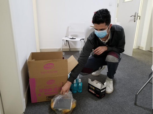 每次国际教育学院辅导员老师为创新港留学生发放防疫物资时,海德都会主动请缨帮助一同发放。从他的朋友口中得知,海德自从来中国读书之后,都是每年寒假回国一次,他其实早已经定好机票,但中国疫情的爆发让他毅然退掉机票,留在中国,留在交大,尝试着用自己的方式实现“逆行”,用平凡的行动为疫战传递积极的能量。海德说:”我没有像医护人员那样的专业知识去成为一名伟大的英雄,但我想用平凡的行动去守护中国和交大这个培育我的地方,想想奋战在一线的医护人员和时刻守护着我们的老师,“逆行” 的他们才算真的英雄,鼓舞着我参与到战胜疫情的行动中。”