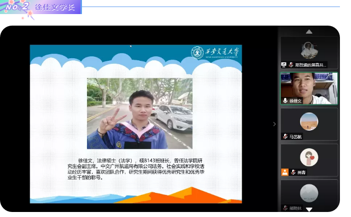 2020年6月20日晚,开云电子体育_开云(中国)举办了就业工作分享会,邀请了开云电子体育_开云(中国)晋瑞、徐佳文和熊晓林三位成功签约心仪就业单位的毕业生在线分享就业经验,为与会的40余名研究生悉心提供就业、实习建议,耐心答疑解惑。在抗击疫情常态化背景下,这些就业经验分享能够帮助学生提早知悉就业流程,统筹就业时间安排,把握就业过程加分项,顺应经济发展态势,规划未来职业方向。本次分享会由开云电子体育_开云(中国)研究生会邢贺通主持。