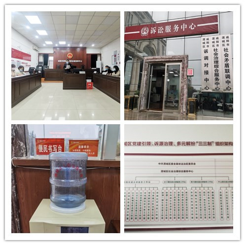 庭审结束后,大家参观了渭城区人民法院的诉讼通道大厅。在这里,便民书写台上陈列着不同类型的文书样本,供前来诉讼的当事人参考;温馨提示的指示牌也随处可见,为前来诉讼的群众做好咨询和引导。渭城区人民法院从细节处着手,贯彻落实“公正司法、一心为民”的宗旨。