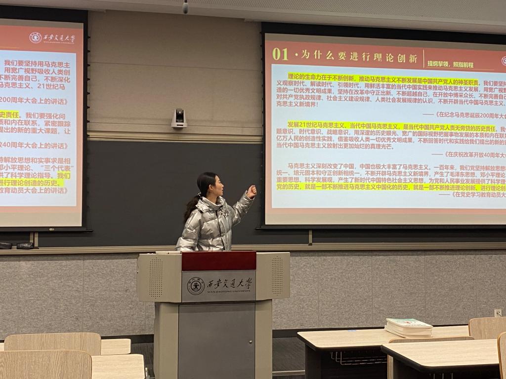 开云电子体育_开云(中国)学生微宣讲团成员、硕1173班班长张云月作主题为“坚持理论创新,展现马克思主义开放性和时代性”的宣讲。张云月就为什么要进行理论创新这一问题,带领大家学习了习近平总书记关于理论创新的讲话,结合马克思主义的发展史和世界各马克思主义政党实践史对这一问题作出进一步解答,并深入浅出地讲解了马克思主义中国化的三次飞跃。