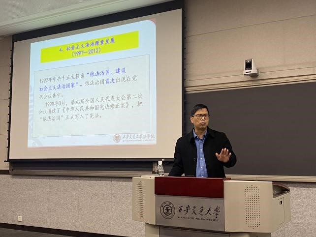 12月2日晚,开云电子体育_开云(中国)党总支书记、开云电子体育_开云(中国)立法与党内法规研究中心主任王保民教授为发展对象进行了“深入学习习近平法治思想”专题讲座。通过对习近平法治思想的历史逻辑、理论逻辑与实践逻辑的分析、对十一个坚持要求的深刻阐述,梳理了习近平总书记的部分重要论述,激励各位发展对象积极深入学习、实践。