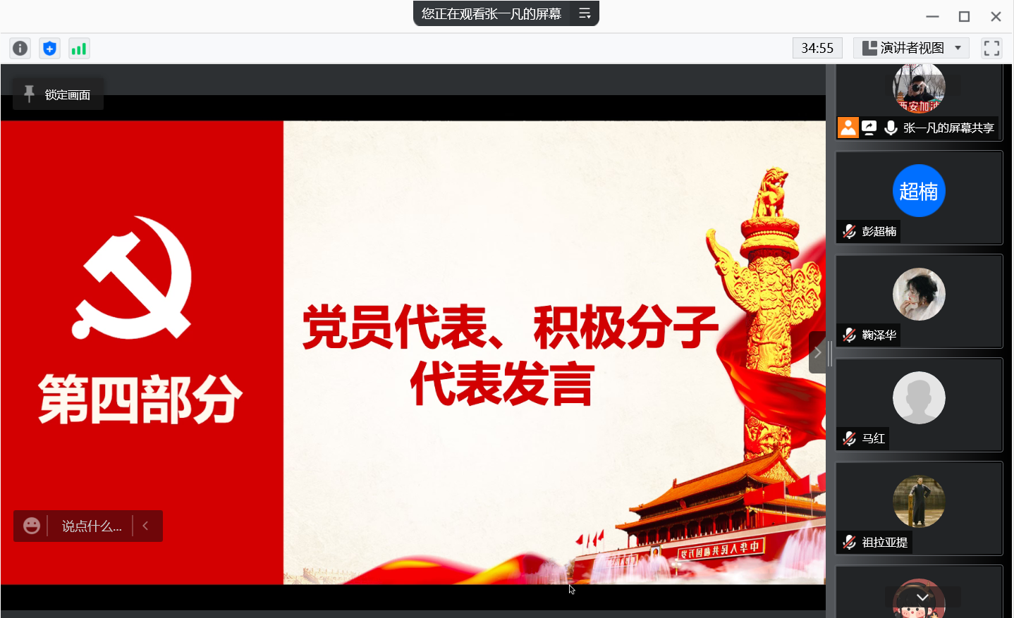 会议第三项,党支部书记张一凡对支部近期工作进行了总结,他指出硕1173党支部积极配合班级疫情防控工作,以组长为负责人督促检查组内成员的核酸检测、健康日报等填报情况,将学校、学院的工作安排第一时间传达到每一位同学。同时,支部党员积极投身到抗疫志愿服务工作,全体党员都加入了学校或学院的抗疫先锋队,以实际行动践行党员使命。疫情是场大考,要积极思考如何回答好“请党放心,强国有我”的现实问题。