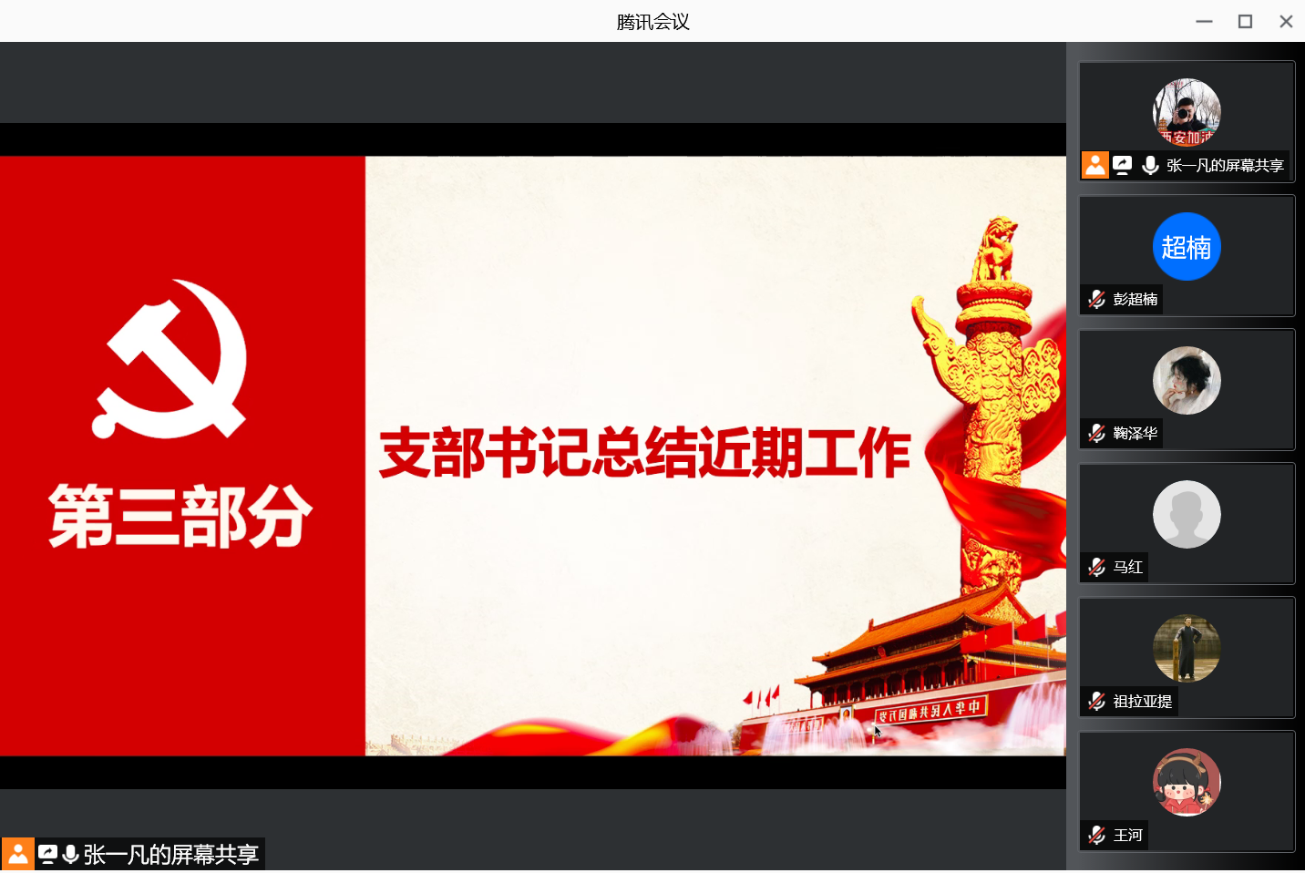 最后,李万强副院长对会议做了总结和寄语。李万强副院长肯定了支部成员在疫情防控中所做出的贡献和发挥的模范带头。结合刚刚结束的研究生考试工作安排,他分析了当前复杂严峻的疫情形势,提醒大家一定要加强自我防护,同时,要积极配合政府应对疫情所采取的有效措施和有力保障,坚定战疫信心。他强调,同学们要合理规划这段时间的学习安排,自觉自律坚守自己的主战场,为学习和科研打好基础。