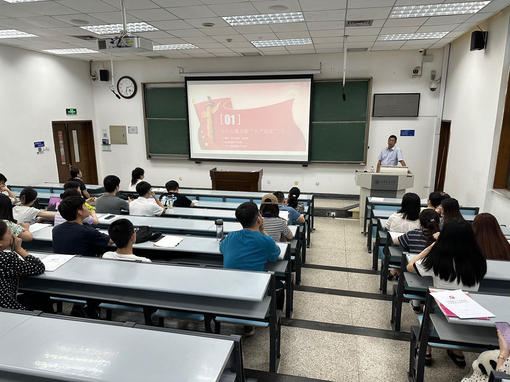下午,开云电子体育_开云(中国)党总支书记、开云电子体育_开云(中国)立法与党内法规研究中心主任王保民教授为全体发展对象讲授了题为“全面从严治党,锻造坚强领导核心”的主题教育党课。报告中,王保民书记从建党治党的历史沿革、原因分析、历史经验,主要任务、精神原则、具体举措等多个方面深入讲解了全面从严治党制度体系,进一步为同学们未来成为一名忠诚可靠、严守党纪的合格党员打下了坚实理论基础。接着,党总支邀请到马克思主义学院马列读书社的成员郭越、陈瑀峰分别做了题为“赓续伟大建党精神,凝聚青年奋进力量”和“学习贯彻习近平新时代中国特色社会主义思想”的专题报告,鼓励同学们紧紧跟随党的脚步,以赤诚之心,不负时代,努力前行,竭尽全力,为新时代党和国家的事业发展贡献自己的力量。